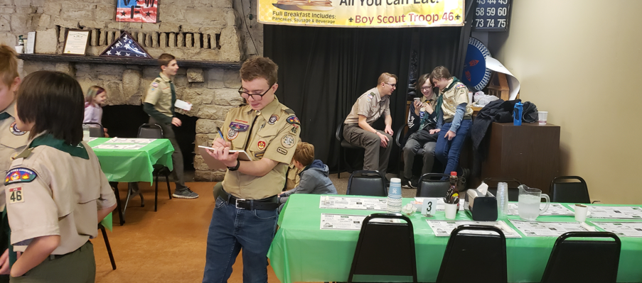 Pancakes anyone? On April 23, 2022, Troop 46 resumed having our annual pancake breakfast. This year, we need to relocate the event to the Wheaton VFW. We had hundreds of meals served and the troop got back into the habit and raising some fund to underwrite our campouts