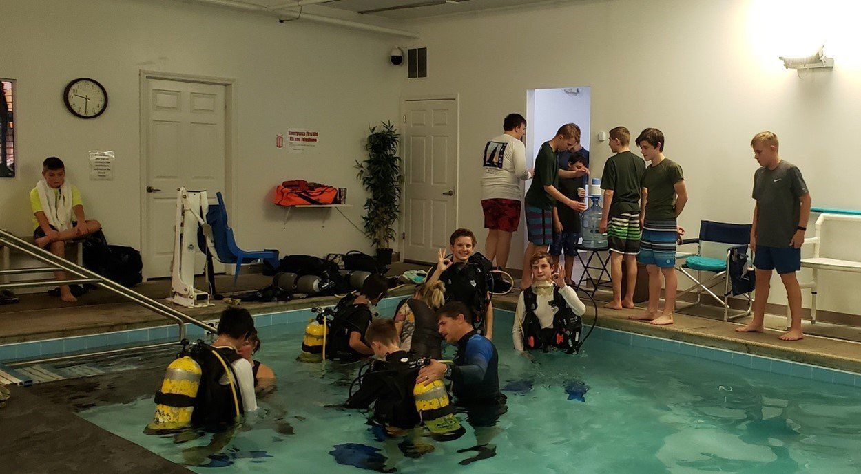 After the buoyancy vest check, the Troop was ready to go the next steps in learning about scuba diving.