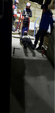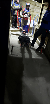 After getting the hang of the luge sled, the Troop heads to track and lines up to do the luge run.