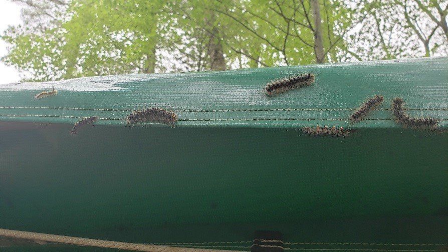 Unfortunately, there was an infestation of gypsy moth caterpillars at camp. They were everywhere, eating all the leaves from the trees.